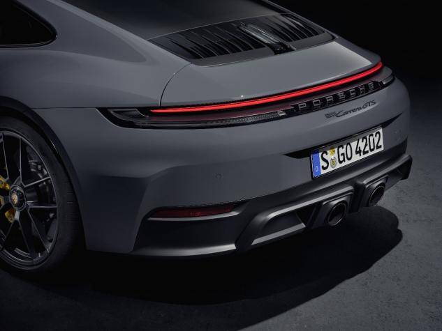 車尾部分,重新設(shè)計的貫穿式尾燈和“PORSCHE”字樣融為一體,使 911 的車尾顯得更寬、更深邃。重新設(shè)計的后格柵每側(cè)有五個鰭片延伸至后窗,可形成一個整體圖案,逐漸融入下方的可伸縮擾流板。車牌照位置更高,后保險杠結(jié)構(gòu)清晰。車型專屬標(biāo)配的運動排氣系統(tǒng)優(yōu)雅地融入到醒目的擴(kuò)散板鰭片中。