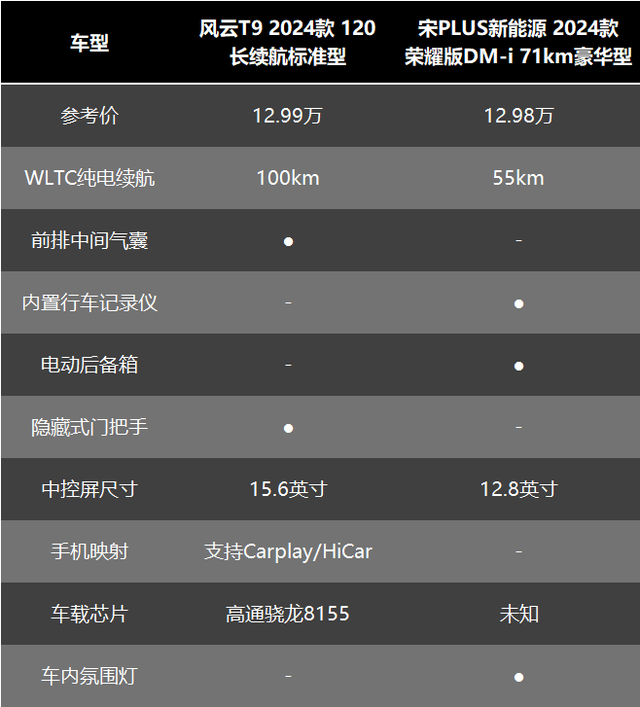 宋PLUS DM-i則多出了行車記錄儀、電動后備箱和車內(nèi)氛圍燈等配置,但這些配置價值上和風(fēng)云T9多出來的配置還是有一定差距。