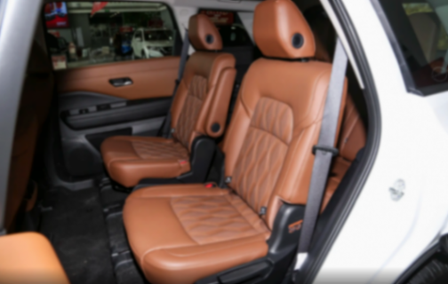 至于乘坐空間方面,在將前排座椅調到合適的位置,按照一名身高1.8米的乘客為例,在頭部有著四指寬的距離,第二排由于有較長的滑軌,所以腿部空間還是比較充裕的,可以根據實時情況來調節第二排座椅的距離,而第三排座椅在將第二排座椅調整到靠后的位置,那么腿部空間就略顯擁擠了,但是乘坐一個未成年還是綽綽有余的。此外,日產探陸的座椅還采用了皮質材料包裹,在觸感上也是比較細膩的。