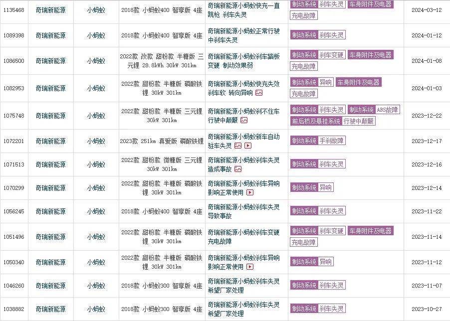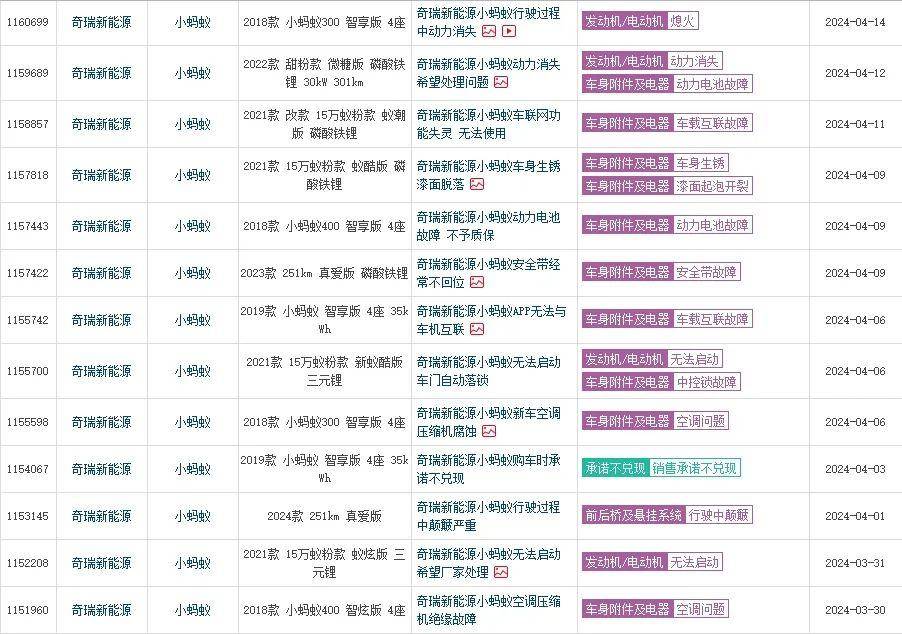 回看奇瑞新能源此前的產(chǎn)品或許能得到答案。比如奇瑞小螞蟻在車質(zhì)網(wǎng)上就存在行駛中動(dòng)力消失、無法啟動(dòng)、車身生銹、剎車失靈等故障的投訴;混動(dòng)的瑞虎8PLUS鯤鵬e+在車質(zhì)網(wǎng)上存在動(dòng)力受限、續(xù)航虛標(biāo)、失速、油耗高、變速箱不升檔等故障的投訴;星途追風(fēng)PHEV在車質(zhì)網(wǎng)上存在發(fā)動(dòng)機(jī)故障、變速器跳檔、續(xù)航虛標(biāo)、油耗高、變速器頓挫、車機(jī)卡頓等故障的投訴。奇瑞的新能源車型在產(chǎn)品質(zhì)量問題如此多發(fā)的情況下,就算價(jià)格再便宜,消費(fèi)者也難免產(chǎn)生觀望情緒,畢竟誰也不想去做新車型的小白鼠。