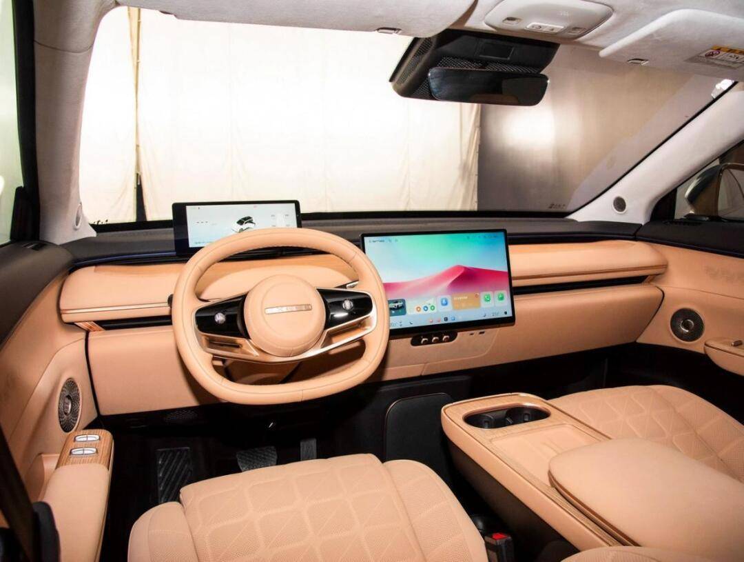 尺寸方面,星紀(jì)元ET長(zhǎng)寬高分別為4955/1975/1698毫米,軸距為3000毫米。整體尺寸與理想L7、問界M7、小鵬G9三款車型接近。內(nèi)飾設(shè)計(jì)十分簡(jiǎn)單,一大一小兩塊屏幕承擔(dān)了所有的信息顯示和人機(jī)交互功能,方向盤造型非常別致。