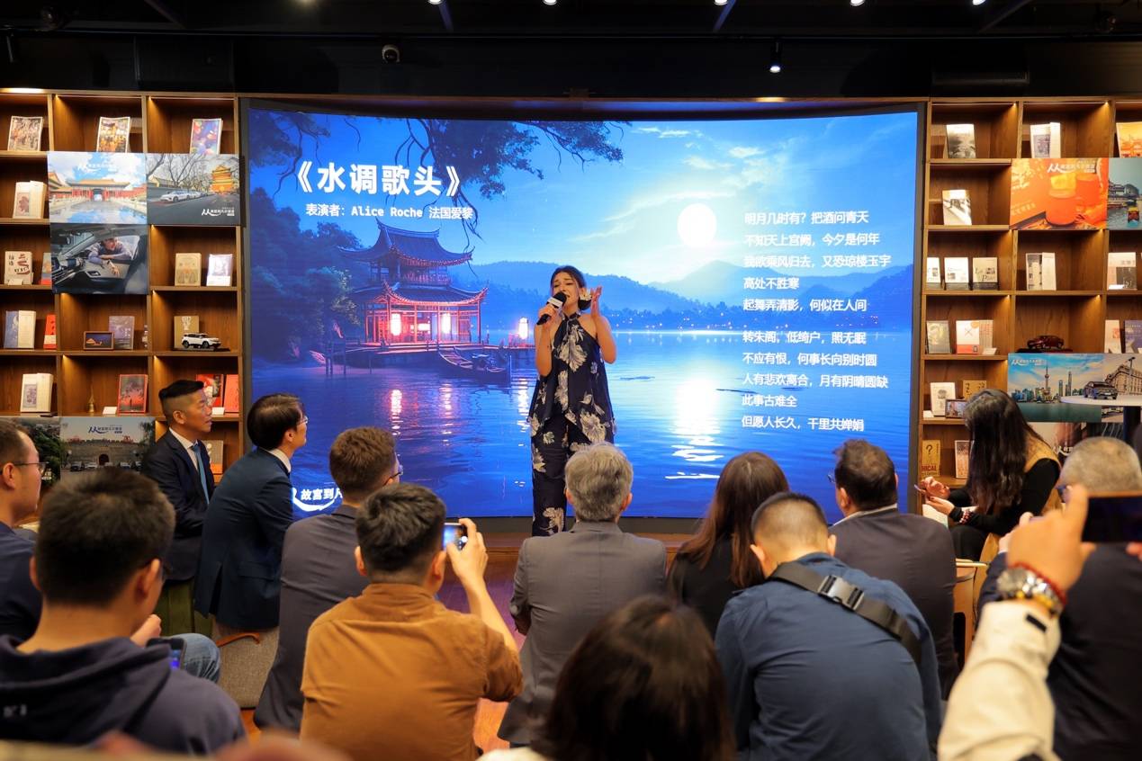 在思南公館,熱愛中國傳統文化的法國姑娘——法國愛黎,也演唱了她自己用法語翻譯的蘇東坡的經典詩詞《水調歌頭·明月幾時有》。