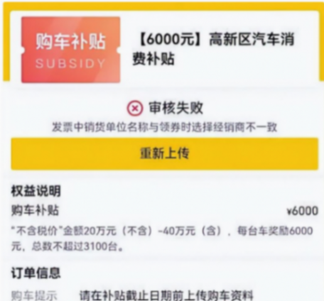 但是,讓用戶想不到的是,在活動正式開始之后,用戶申領補貼的時候,卻顯示“審核失敗”。