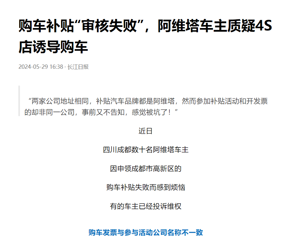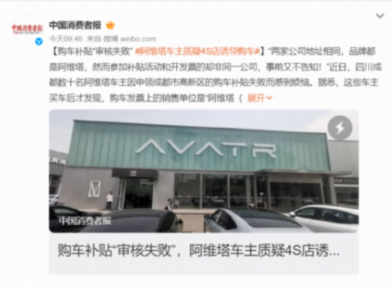 申領購車補貼失敗,阿維塔4S店被質疑誘導購車,阿維塔不可不慎