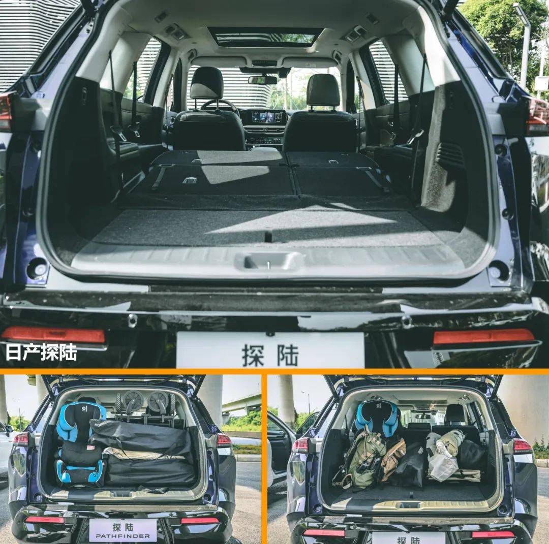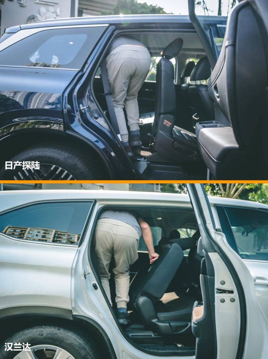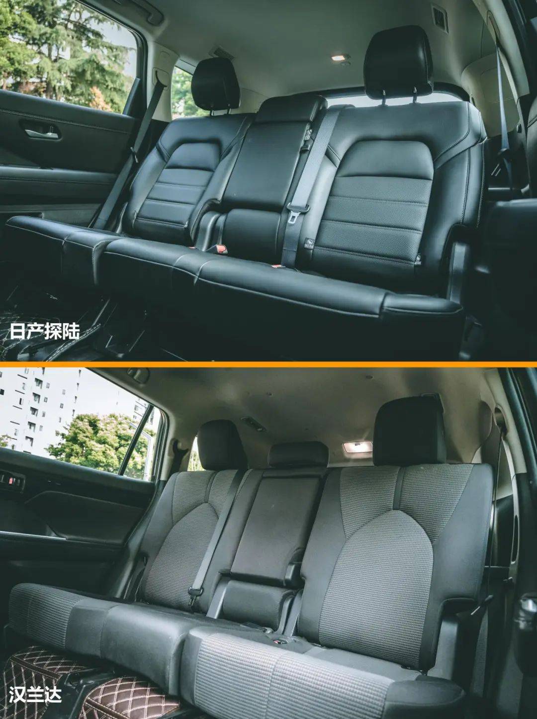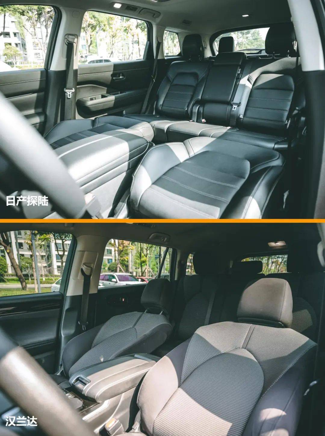 其次是駕乘空間上的差異。雖然很難輕易肉眼分辨兩款車的空間優劣,但探陸明顯更看重乘客的體驗,不僅上下車便捷度更好,而且第三排乘坐的舒適性也明顯好過漢蘭達,另外日產在車內布置了24個儲物空間、座椅組合靈活、后備箱容積更大,這些也是日常家用過程中影響便利性的方面。