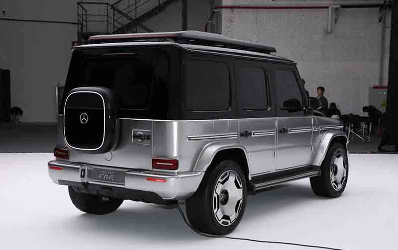 車輛側面與車輛尾部的設計,也完全與奔馳G級相同,不過,從底盤來看,似乎能看到明顯的差異,排氣系統消失了,在車輛的前部和后部各有兩個差速器,同時EQG將為每個車輪都提供一個電機,也就是總共是四電機。