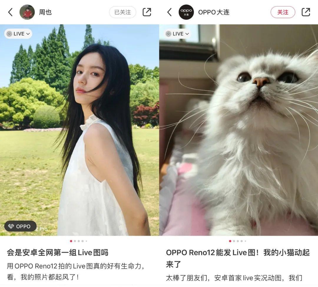作為補充,其實不少安卓手機都支持拍攝實況動態照片,但在OPPO之前,只有蘋果的Livephoto實況照片可以在小紅書、微博等平臺顯示,安卓手機雖然也有支持實況,但并未和第三方平臺打通,發布出來并不顯示,目前Reno12系列實況支持小紅書,也是安卓第一家和第三方打通的。