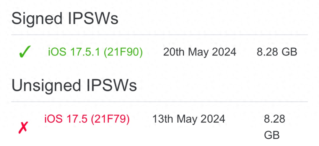 \"iOS 17.5驗證通道關閉,已升級 iPhone 用戶無法再降級\"