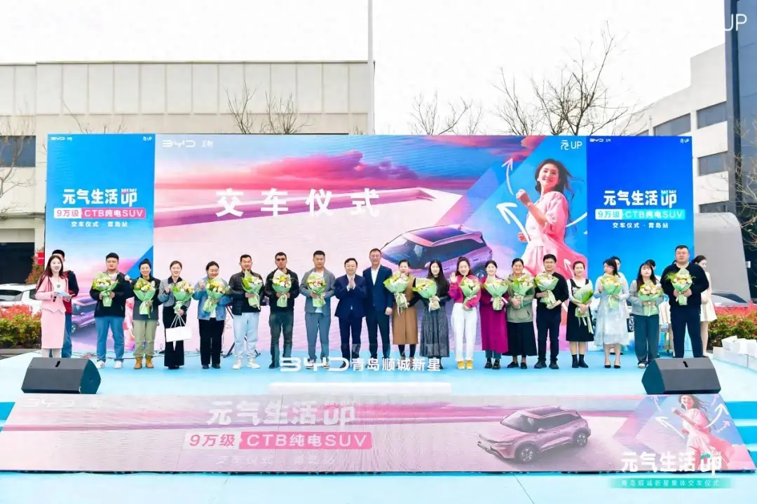 近日,比亞迪在青島為剛上市的元UP舉辦了新車交付儀式,比亞迪集團總裁王傳福親自來到現場,向數十位車主交付了新車。作為2024年歐洲杯的贊助商,王總還為每一位車主送上了簽名的歐洲杯比賽用球、鮮花等伴手禮。