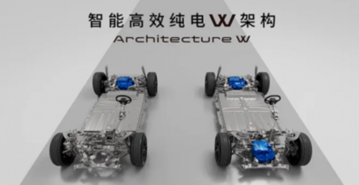 據(jù)悉,“W”架構將會搭載“三合一”高功率驅動電機和一體化壓鑄全鋁外殼的大容量、高密度電池。其中,在動力方面將提供,單電機驅動和雙電機四輪驅動。底盤方面,前懸為雙叉臂懸架,后懸為5連桿獨立懸架,可以為駕乘者帶來不錯的舒適性體驗。