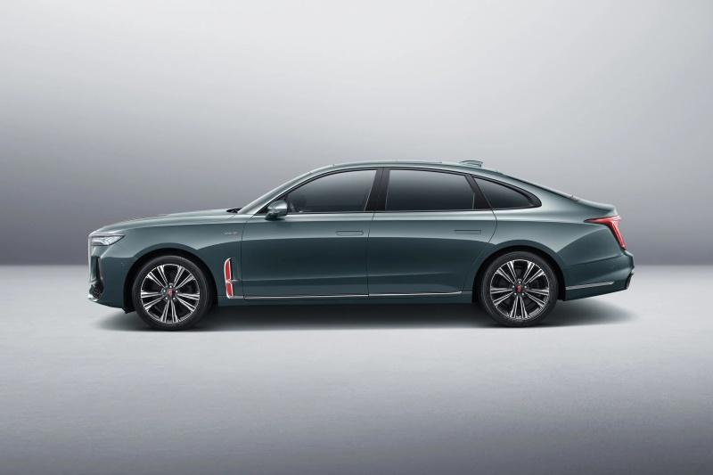 車身側面,新款紅旗H9前翼子板上的旌旗式裝飾條提供紅色樣式。在車身尺寸方面,新車的長寬高分別為5137/1904/1498mm,軸距為3060mm。車尾方面,新車采用貫穿式的尾燈組,兩側的尾燈主體形成縱向布局,內部光源由五個平行的LED燈帶組成。另外新車底部換裝雙邊共四出的排氣裝飾,后杠采用更加運動的熏黑造型設計,整體看上去更加動感。