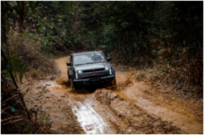在大扭矩和電控四驅(qū)能力的幫助下,該車能夠輕松應對各種“炮彈坑”、交叉軸、涉水路等極端路況;同時,全鋁車身、防翻滾系統(tǒng)、10mm三明治結構防護裝甲等被動安全裝備不僅極大提升了安全性能,亦有效提高了駕駛信心。