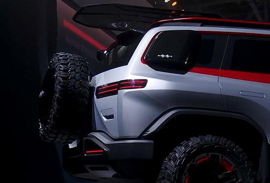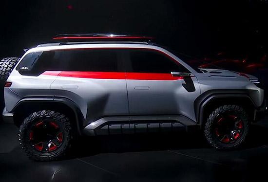 車身側面,新車展現出了很強的肌肉感,車身線條較為柔和,不過前后輪眉的粗獷造型,配合上越野輪胎,給人一種拉力車的既視感。車尾部分,外掛式備胎、車頂擾流板與造型纖細的尾燈組,看上去也是獨具特色。
