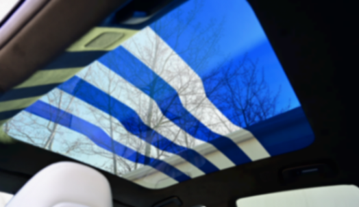另外,極氪001的這塊天幕也比較有意思,除了阻隔紫外線和隔熱等基本功能之外,還具備分區調節功能,比如上圖這種彩條形的天幕就能輕松實現。