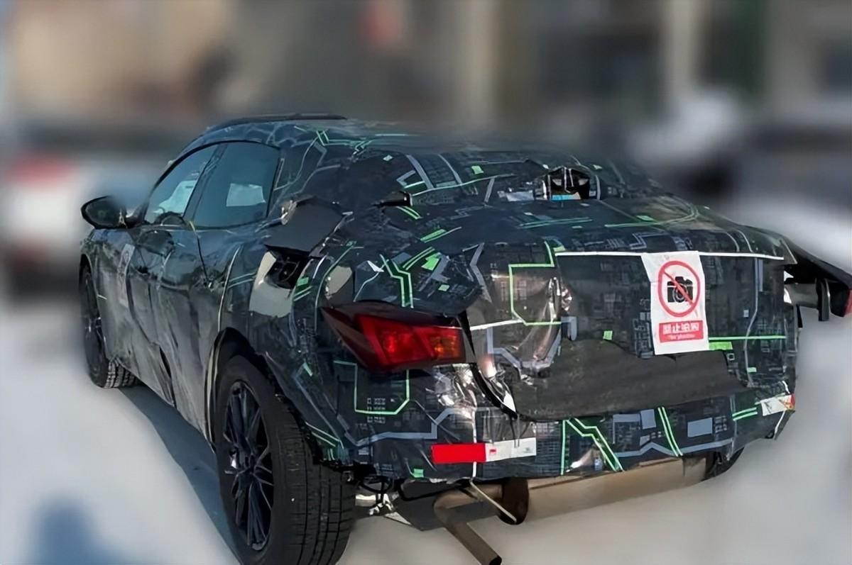 側(cè)身在一些細節(jié)上進行了調(diào)整,線條輪廓維持飽滿的設(shè)計風格,升級為隱藏式門把手,下側(cè)裙線條明顯隆起,彰顯出較強的力量感。尾部變化較大,車頂采用兩段式擾流板設(shè)計,貫穿式尾燈采用像素式光源布局,點亮后美觀且辨識度高。后包圍進行了內(nèi)凹處理,中間加入熏黑裝飾件點綴,烘托出較強的運動氛圍。