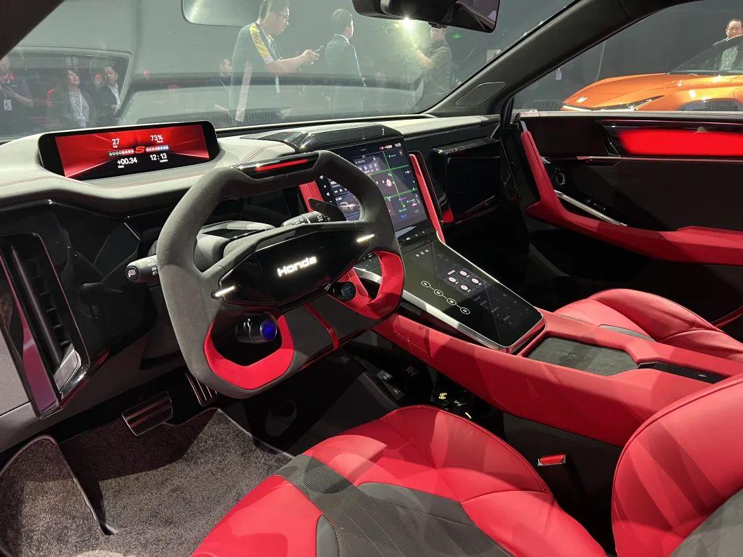 燁GT CONCEPT帶來了賽化座艙,紅色內飾,賽車式方向盤和儀表盤以及一體式座椅,帶來駕駛激情。這款車的副駕屏幕還首次搭載華為光場屏,可通過聲音、光線和香氣設備產生聯動,帶來個性化的奇妙體驗。