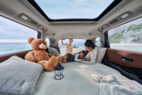為應(yīng)對日常更多的用車場景,探陸提供了多種空間組合模式。比如二三排可以同時放倒,縱深可達(dá)2m,外出露營鋪一個充氣床墊,即刻變身大床房,一家人玩累了可以躺在后座休息;如果多人出行,為了節(jié)省空間,探陸二排、三排可以同邊各放倒 1 個座椅,這樣可以放下 2 米長的釣魚、槳板、自行車等裝備,解鎖更多的戶外活動。