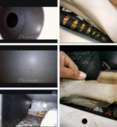 拆開主四門門檻內飾板,使用內窺鏡查看內部空腔,未發現任何水痕及泥沙沉積現象;左側前地毯有水痕,但右側地毯沒有,看來之前主駕有可能進過水,但量一定不多,也有可能是打翻水杯之內的情況造成的;主駕座椅沒有拆卸,轉向管柱也沒有生銹的跡象。