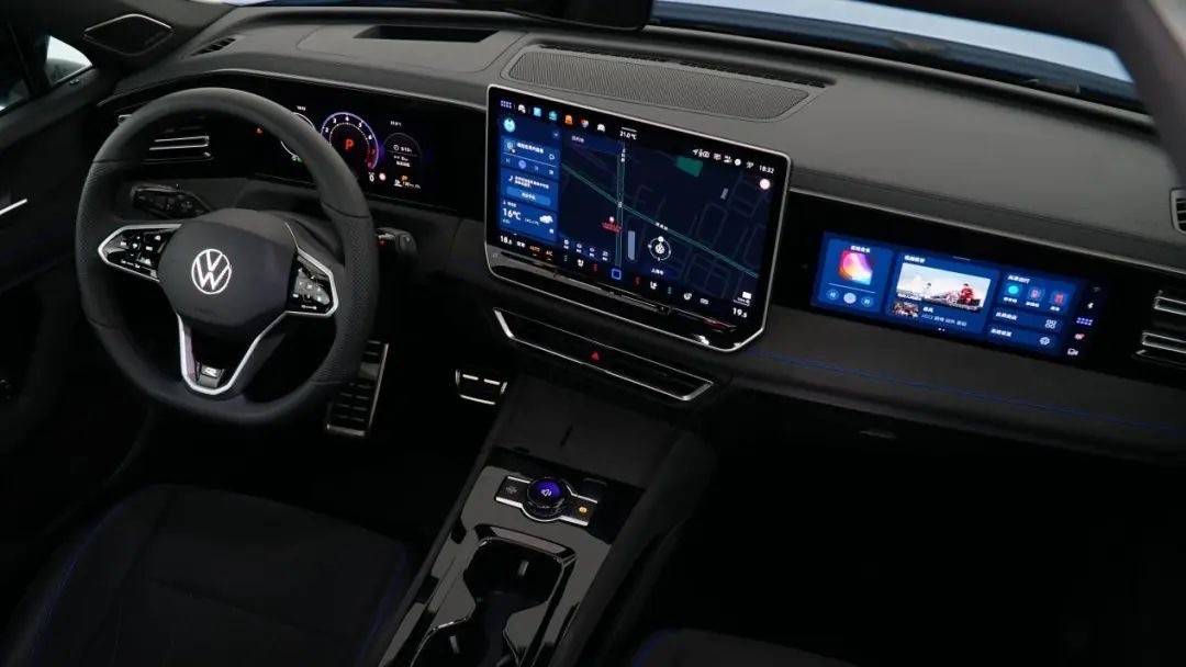 最明顯的一個特征就是,途觀L Pro在副駕駛位置增加了一塊獨立的娛樂屏,這顯然是參考了目前國內的熱門設計。