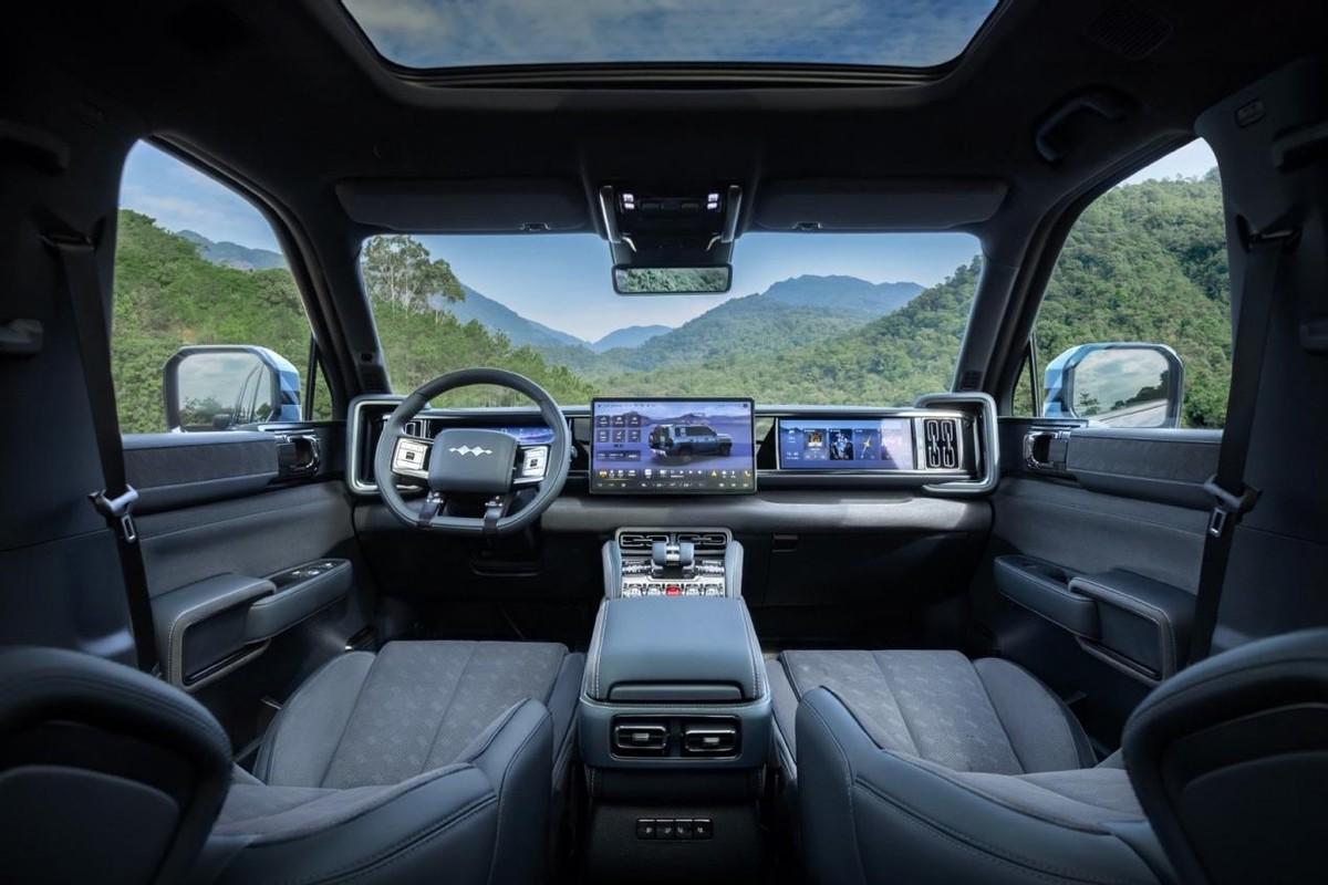 內飾方面,官方暫未發布官圖,可以參考豹5的設計風格,車內設計充滿賽博炫酷感,采用日蝕藍的高級感配色,中控臺配置了15.6英寸的多媒體屏幕、左側儀表屏、右側娛樂屏,加深內飾的科技含量。另外,新車將采用三排布局,五米身長的加持,適用于家庭出行。