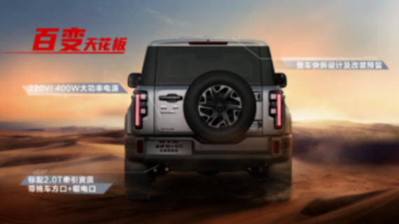 在越野樂趣方面,更是百變拓展天花板:全新BJ40環(huán)塔冠軍版擁有2.0T牽引資質(zhì),也為用戶預留了拖車方口和取電口,搭載220V/400W大功率電源,可極大拓展戶外用車場景,加上整車快拆設計及改裝預留,讓環(huán)塔冠軍版的可玩性拉滿。