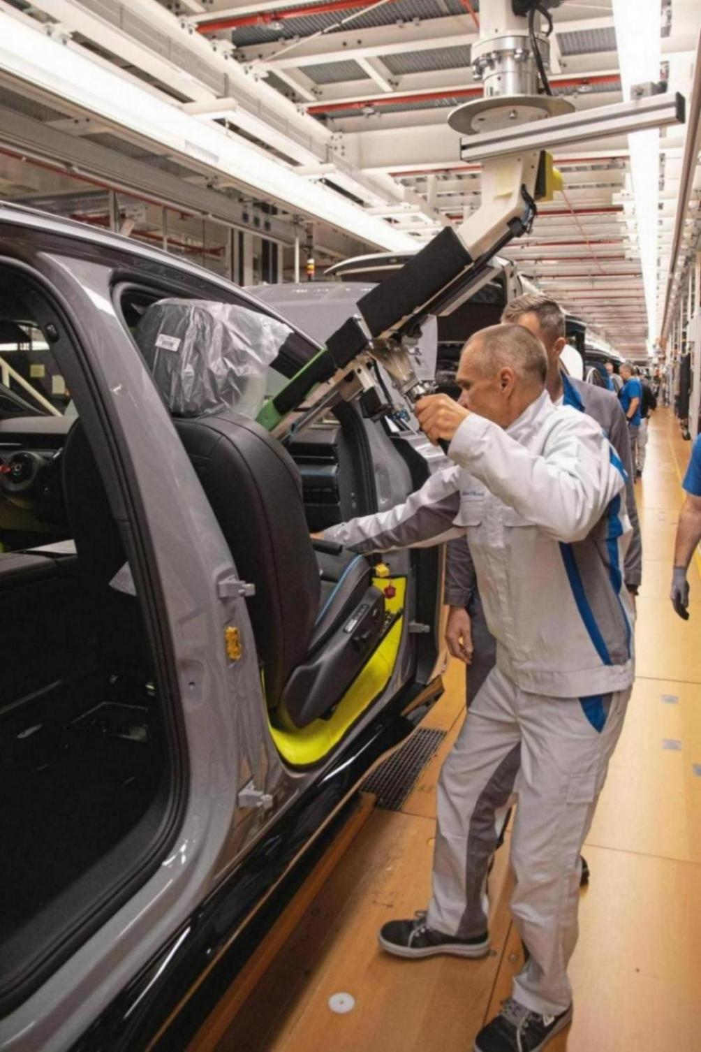 最后,將座椅放置在螺栓點的正上方,插入準備好的螺栓,用EC扳手將其擰緊,等到綠燈亮起,操作就完成了。座椅安裝到位,現在夾上必要的連接插頭,然后將其移動到后排座椅上,那里還有螺釘連接和連接插頭——根據配置的不同而不同,這些都在汽車隨附的卡片上有所注明。在移動到下一個工作站之前,會在每個工作站插上電源。在那之前,我可以安裝儀表板側飾板(看起來像“豬耳朵”的部件)和踢腳板,也是通過夾具操作。如果沒有訂購Isofix(兒童安全座椅固定裝飾),則必須將小塑料蓋(“法棍”)插入到相應的插槽中。輕輕按壓并溫柔敲擊,即可聽到正確的夾緊聲,最后用手掌撫平車門密封件的橡膠條。看起來不錯,感覺也很好。下一輛車要過來了——這是對其他工作人員而言的,而我則必須前往下一個地方了。我要去看看大廳的一樓,在那里車身和車門被全自動、極其精準、幾乎無聲地運送到指定位置。可以說,最終這家工廠可能會完全擺脫叉車。