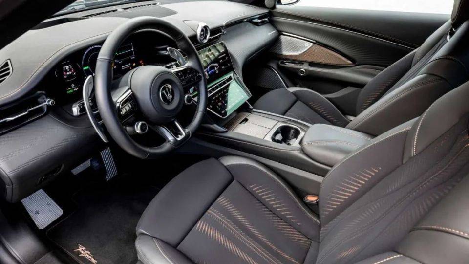 內(nèi)飾方面,采用和MC20和Grecale一樣的設(shè)計(jì)理念,采用“對立平衡”設(shè)計(jì)風(fēng)格,造型以功能性為中心。新車采用“D”形三輻式方向盤,取消換擋桿,該位置則被設(shè)計(jì)成儲物空間。新車采用2+2座椅布局,后排中部為固定扶手,提供USB接口。