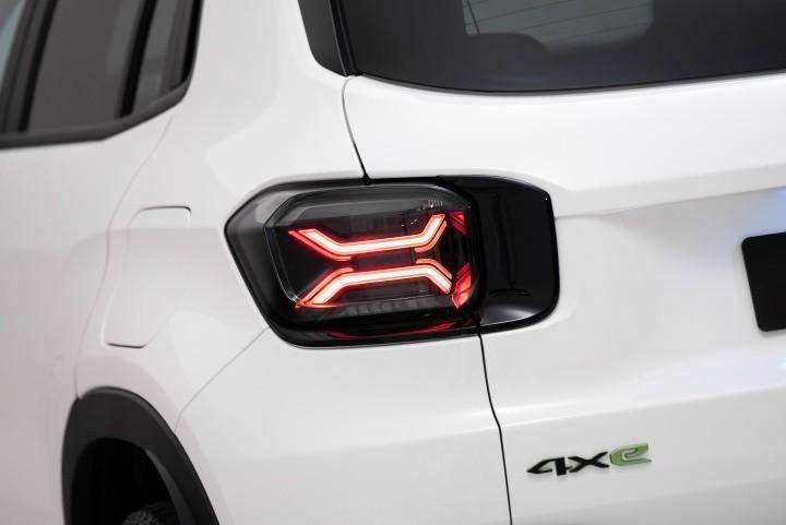 車身側(cè)面,Avenger 4xe采用雙色車身,增加車頂行李架,搭配全新造型的熏黑輪轂,前翼子板保留專屬的英文標(biāo)識(shí)。車尾部分的尾燈同樣融入“X”造型,與純電版車型不同的是排氣方式,新車采用的是單邊單出的排氣方式。