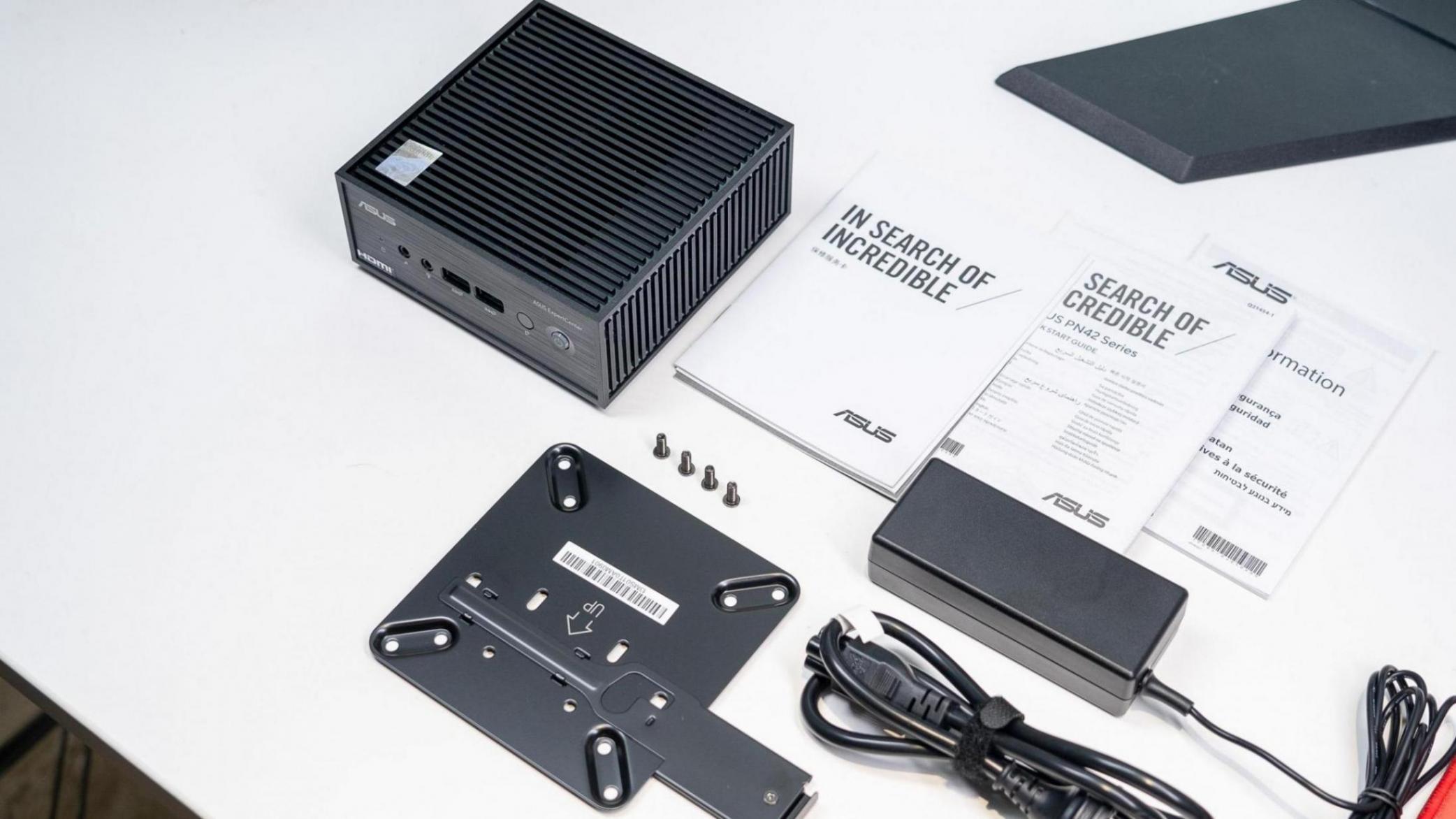 產品包裝還是華碩PN系列迷你主機外觀風格,這臺是華碩破曉Mini青春版。這還是一臺無風扇版本的迷你主機產品,通過被動散熱的方式達到了極致的靜音表現。而且整體接口豐富,雙2.5G網口+WiFi 6E 的網絡配置,都在告訴玩家這是一臺可玩性非常高的迷你主機。
