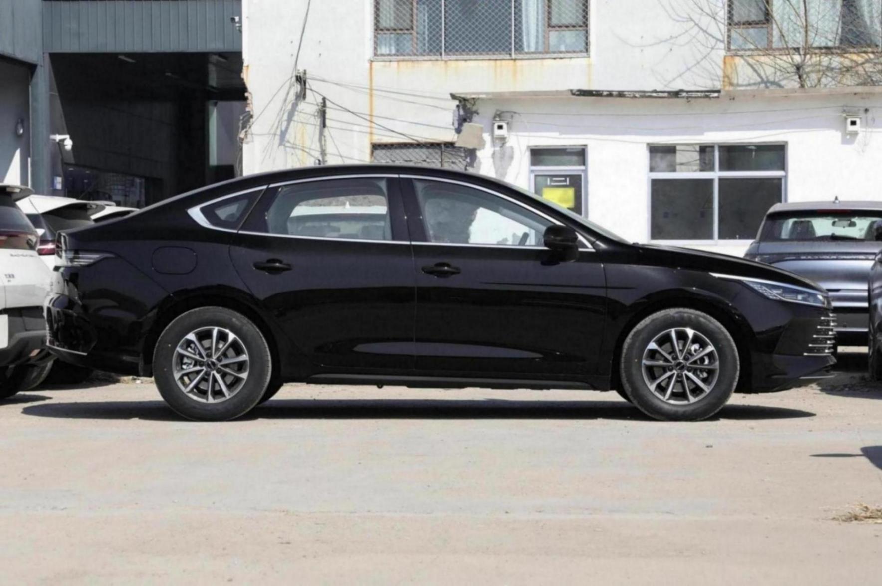 車身側面,比亞迪驅逐艦05的車身尺寸分別為4780x1837x1495mm,軸距為2718mm,整體空間還是比較寬敞的,定位于緊湊型車。此外,比亞迪驅逐艦05車身側面使用了較為細膩的腰線設計進行裝飾,在車窗邊周圍加入了銀色鍍鉻飾條進行裝飾顯得更為精致,車身后背采用了溜背造型,使得整車更具運動氣息。