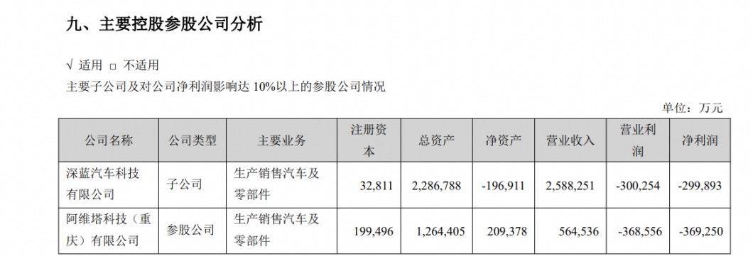 2023年財報中,長安汽車還披露了深藍汽車及阿維塔去年的營收、利潤情況。