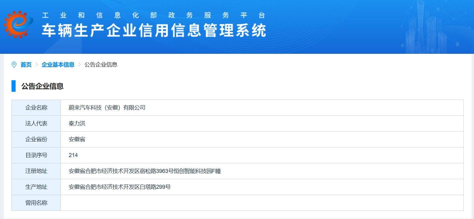 同年12月,工信部車輛生產企業信用信息管理系統顯示,蔚來汽車科技(安徽)有限公司獲得獨立生產資質,生產地址為安徽省合肥市經濟技術開發區白塔路299號。蔚來在港交所公告中表示,將收購江淮汽車第一先進制造基地和第二先進制造基地的生產設備和資產。