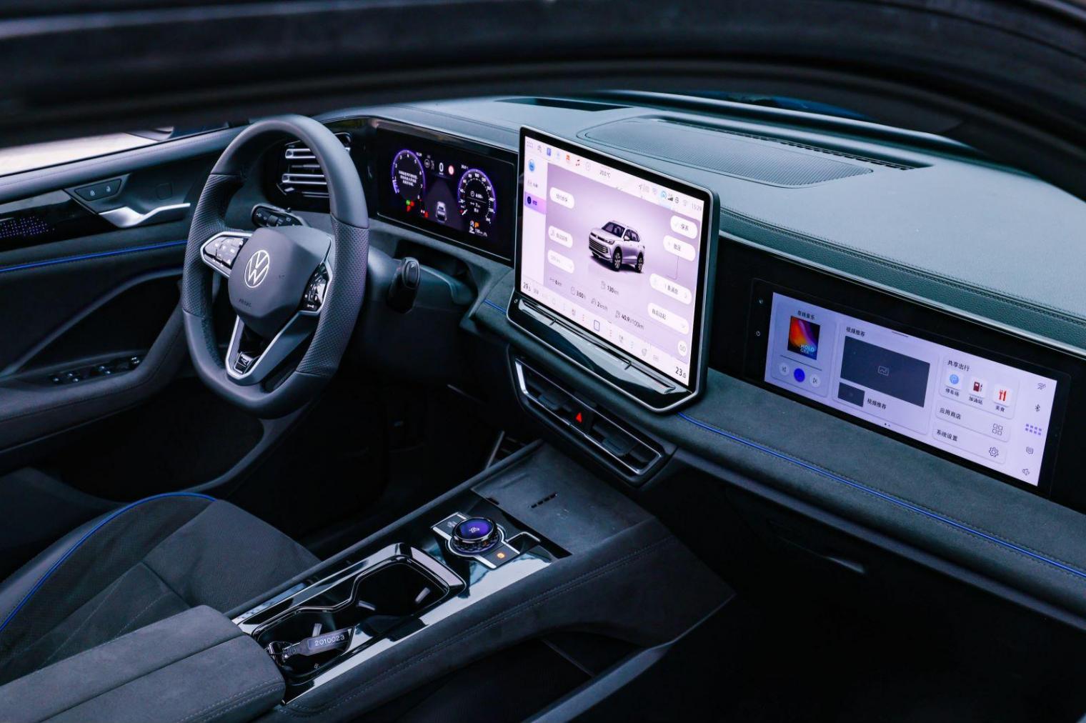 在發布會結束后的第2天,我簡單的試駕了一下這款新車。進入到車內之后給我的感覺就是安全,一切都是為了安全。舉幾個簡單的例子,途觀L Pro 也有副駕駛屏幕,但是從主駕駛的視角往副駕駛看你是看不到任何東西的。只有坐在副駕駛的位置上,你才能看到副駕駛屏幕的顯示內容。我認為這就是為了駕駛者的安全性充分考慮的一種結果。而且副駕駛屏幕可以單獨連接副駕駛的藍牙耳機,這樣副駕駛在享受屏幕帶來的影音娛樂過程當中,對主駕駛完全不會造成任何干擾。而國內不少造車新勢力公司壓根不考慮這些,直接在副駕駛放一個屏幕,影響駕駛者的安全。