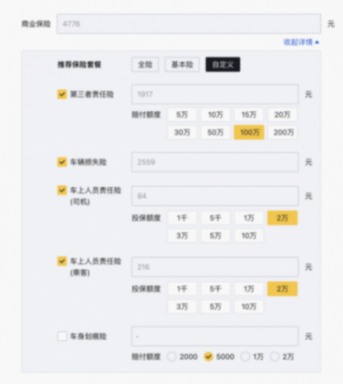 主要項目包含車船稅、交強險以及基本商業保險,其中,車船稅為固定每年350元、交強險為首年950元,而商業保險則包含了100萬第三者責任險、車損險以及2萬車上人員責任險,合并為首年4776元,而交強險與商業險按照首年不出險、次年遞減10%計算,前三年保險成本約為16510元、每年約為5503元。