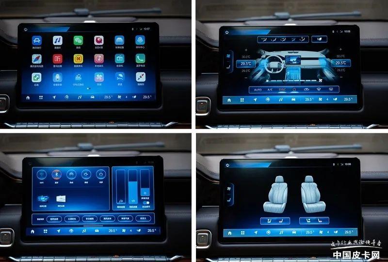 在舒適性方面,火星皮卡將車內環境和功能向豪華、科技、品質感方向升級。氛圍燈帶營造豪華科技感;儀表板、座椅和門板設計型面飽滿,層次豐富;采用大面積皮質包覆,帶來豪華的視覺感受;搭載14.6英寸中控屏+12.3英寸數字液晶儀表的智慧雙屏;中控臺支持手機無線充電,擺脫線束限制;后排27°的靠背與SUV一致,是乘坐人員的黃金傾斜角度,頭部腿部空間更為寬適;10向電動調節座椅,具備三檔記憶與通風加熱功能;擁有超大全景天窗,采光與通風性更好,帶來更加開闊的視野。