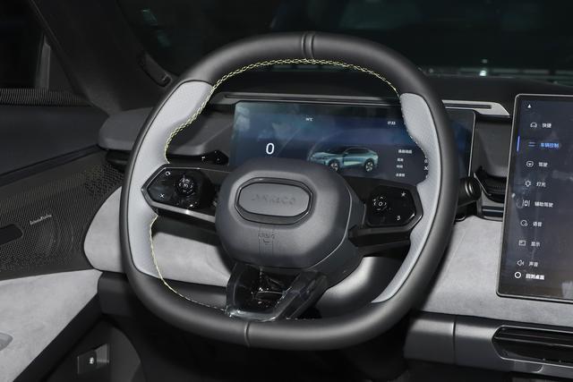 內飾上,領克08 EM-P 120長續航Plus版中央控制區域設有一塊15.4英寸的懸浮式觸控大屏,配以12.3英寸全液晶儀表盤,形成了雙屏互動格局。此外,方向盤采用兩輻式設計,支持上下+高低調節,以適應不同體型駕駛者的乘坐舒適度。