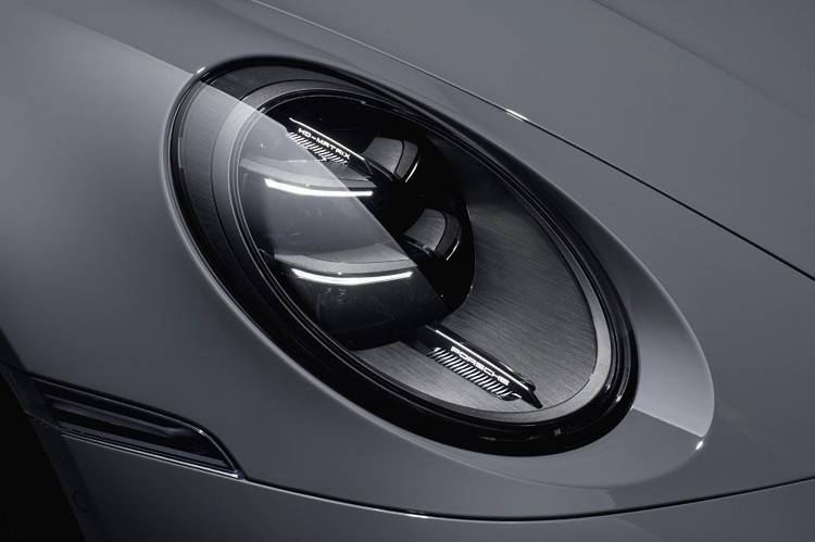 首先是前大燈換裝了高清的矩陣LED大燈,內(nèi)部燈組也改為與全新Panamera、新款Cayenne相同的“四條杠”,擁有多達(dá)32000個(gè)光點(diǎn)。再就是前包圍處換裝了全新樣式,細(xì)節(jié)上采用豎直的擋板設(shè)計(jì),這是一套空氣動(dòng)力學(xué)套件,設(shè)計(jì)靈感來(lái)源于2021年保時(shí)捷發(fā)布的Mission R概念車。另外,包圍處之前一直有的橫向燈條被取消了,其功能被整合到了大燈組里了。