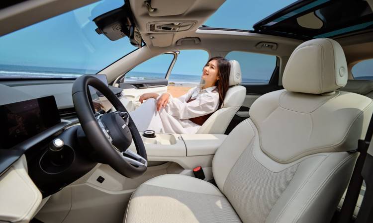整個內(nèi)飾以米色為主題色,并配備人體工程學(xué)座椅,還支持靠背吸風(fēng)、坐墊吹風(fēng)、極速加熱等功能,頭頂有全景天窗,全車最多配備9個揚聲器的環(huán)繞聲音響,外加AQS空氣質(zhì)量檢測(帶負離子發(fā)生器),可以說舒適體驗拉滿。