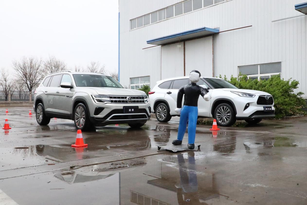從對兩車AEB緊急制動的實測反饋來看,在20km/h速度下,面對突然闖入的假人,兩車均完成了有效剎車。到了30km/h時速,漢蘭達的緊急制動效果卻不如途昂。因為測試路段狹窄導致限速,未能進行更高車速的AEB測試,但途昂在30km/h以上依然能穩穩剎停,AEB安全性能更好。另外,還有一個行車隱患,那就是夜晚盲區增大的問題。因為途昂具備IQ.Light全LED矩陣式前大燈,而漢蘭達配備的是普通的LED前大燈,通過實測發現:途昂夜間轉彎的盲區比漢蘭達小,所以它的夜間行車安全性也相對更安全。