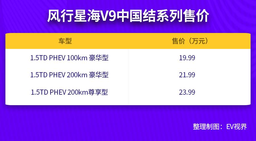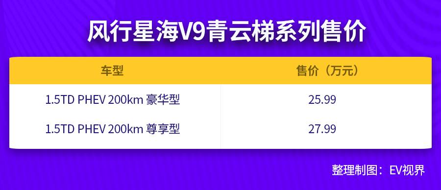 2024年6月1日,東風(fēng)風(fēng)行全新新能源序列首款豪華旗艦MPV——風(fēng)行星海V9正式上市,該車型分為“中國結(jié)”、“青云梯”2個(gè)序列共5個(gè)不同的配置版本車型,其售價(jià)區(qū)間為19.99萬元-27.99萬元。