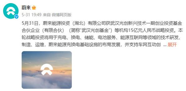 蔚來換電業(yè)務(wù)獲武漢15億元投資