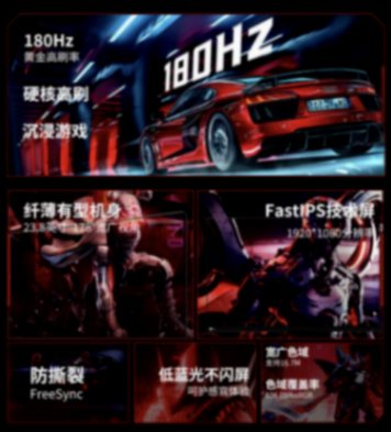據介紹,這款顯示器采用 1920x1080 分辨率 180Hz Fast IPS 面板,亮度 250 尼特,靜態對比度 1000:1,響應速度 1ms,支持 8-Bit 色彩,覆蓋 106% sRGB 色域。