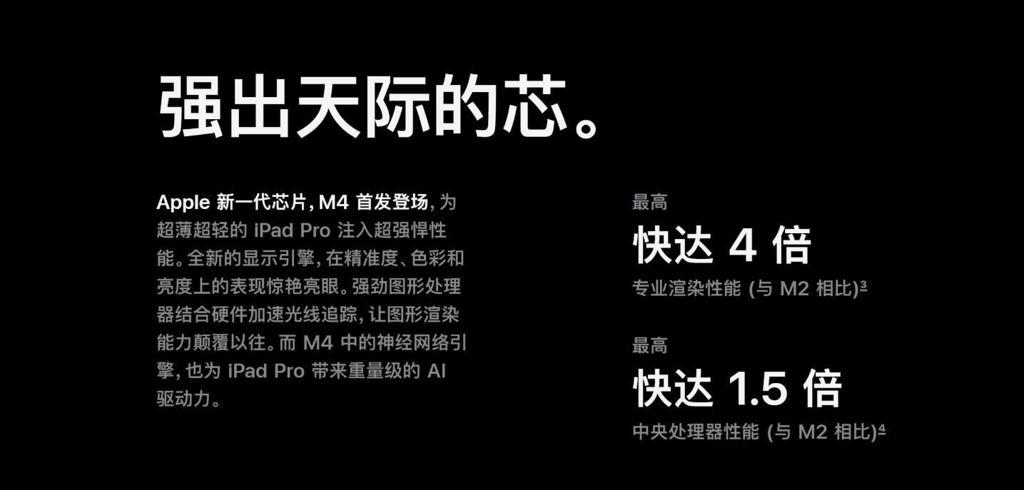 這次的iPad Pro7系列最厲害的地方就是直接跳過了M3,升級為了最新的M4,把一款平板產品加入這么高性能的處理器,這真的很讓同行羨慕和競品流淚,還是那句話,平板電腦只有iPad和其他。