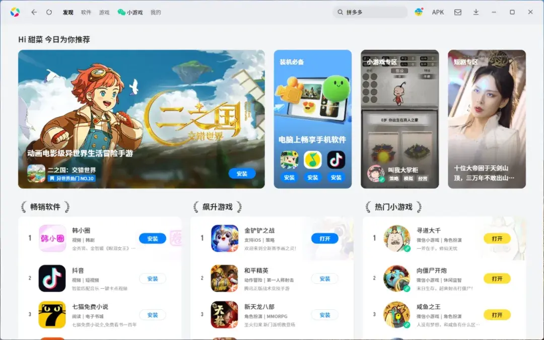 騰訊的應用寶已經(jīng)實現(xiàn)了windows上的WSA技術,并且目前已經(jīng)有主流的 1000 個APP,覆蓋了很多人的需求,比如微信、美團、小紅書等等都有。