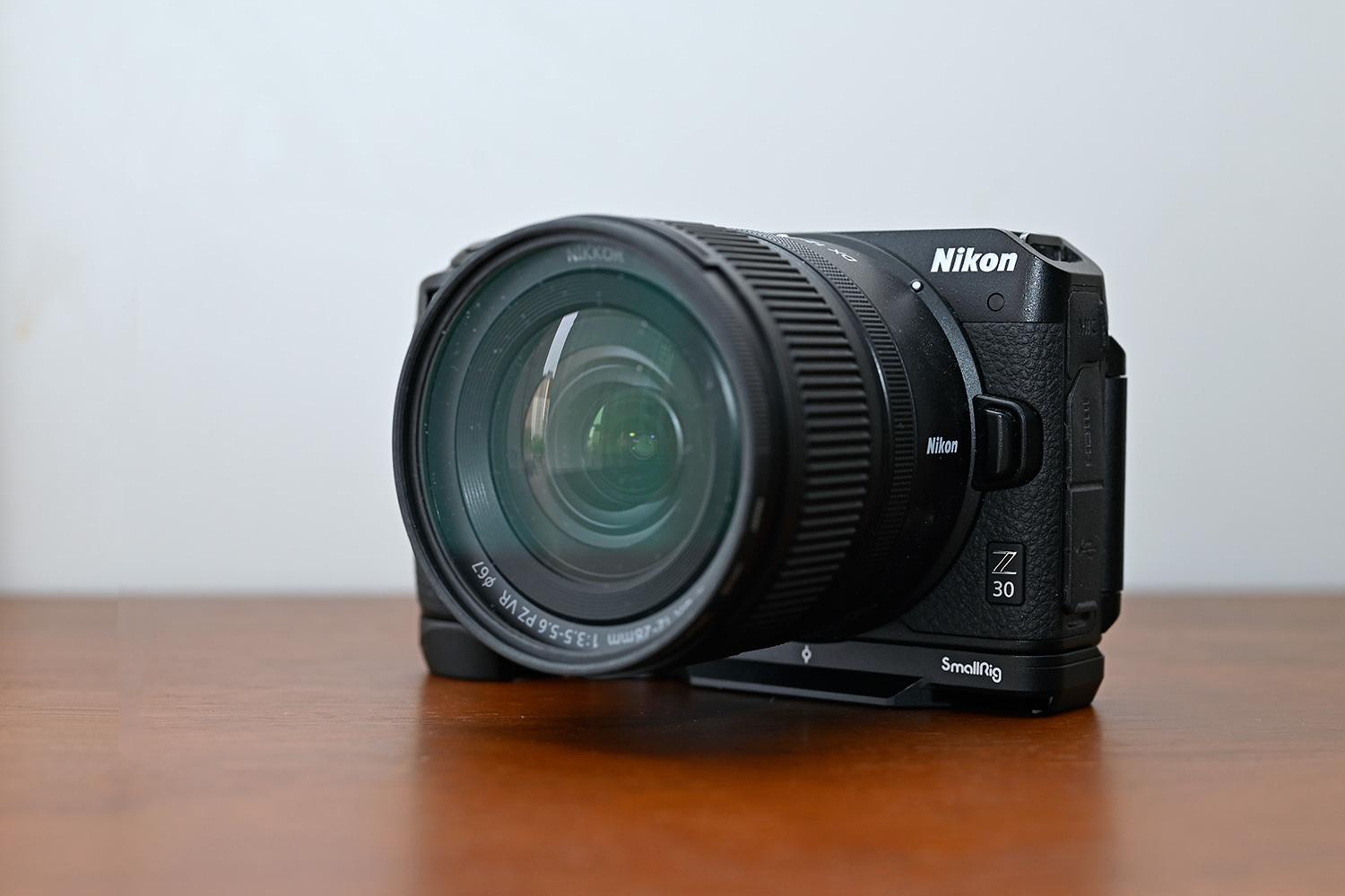 評價君給其裝上了斯莫格L底座,這樣手指受力更好,持握也更舒適了。目前,其Z DX 12-28mm f/3.5-5.6 PZ VR鏡頭套機版6599元,確實便宜。