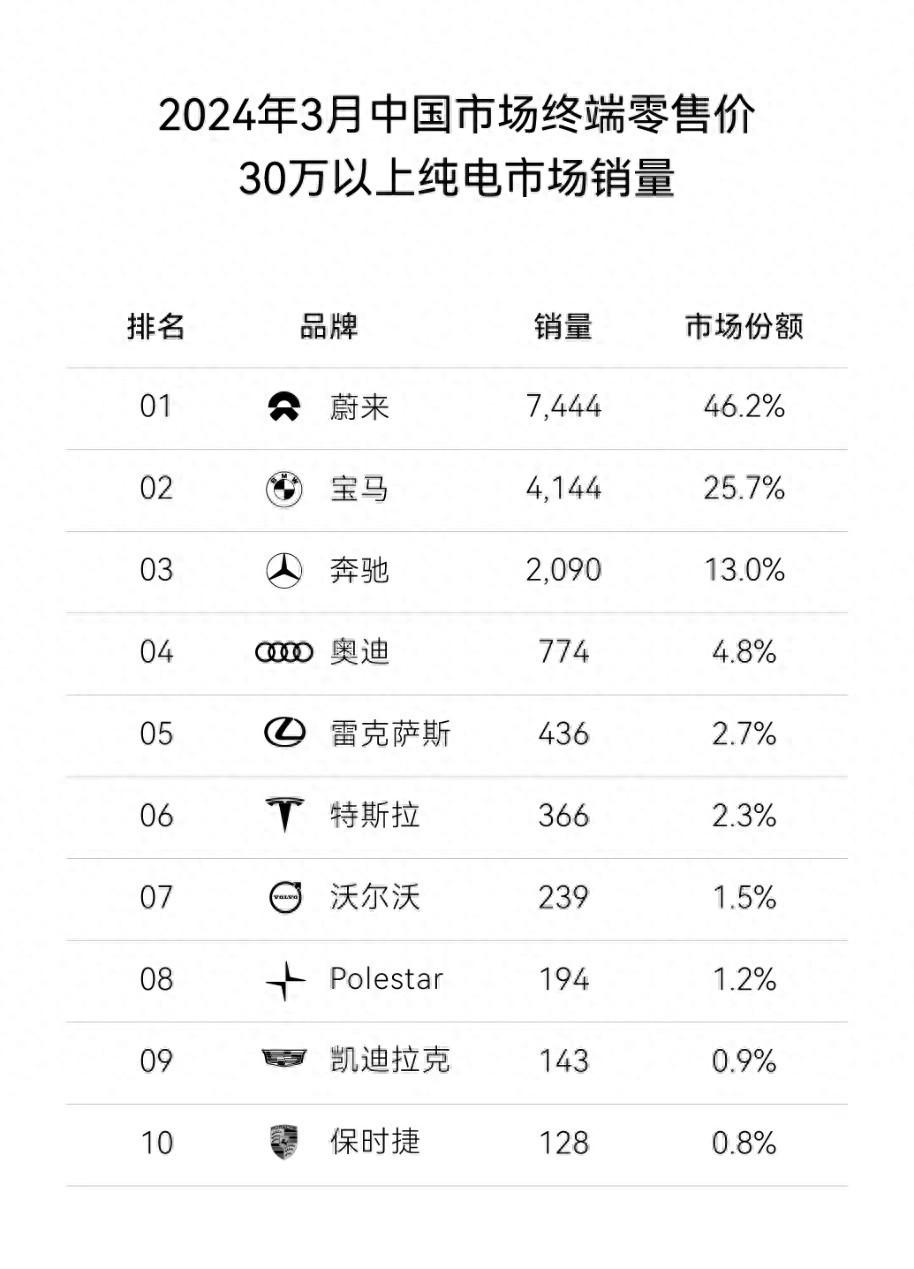 伴隨“消費品以舊換新”相關政策的落地,汽車行業也迎來了新的發展機遇,在“汽車換能”的大趨勢下,4月份截至目前新能源汽車的市場滲透率已經超過50%,其中蔚來作為高端純電汽車品牌代表,在成交均價30萬以上高端品牌純電乘用車銷量中位列第一,市占率達46.2%。