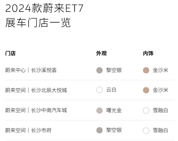 據蔚來官方消息,2024款ET7將于4月25日正式上市,于4月30日登陸湖南車展,并在5月1日舉辦首交儀式。截至4月22日,大悅城、溪悅薈、中南汽車城、市府的蔚來門店均有2024款ET7展示,大家可以提前到店了解。