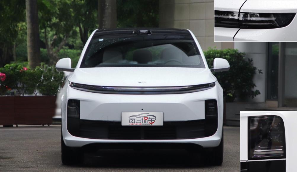 理想L6的尺寸比L7略小些,外飾風格基本相同,細節上有變化。頂部的星環式日行燈首次改為整體式燈帶,此前L7、L8等車型在末端是黃色獨立燈組,這里的視覺效果更完整。其次是位于兩側通風道內部的主燈組改為遠近光分體布置,都帶有透鏡,底部的轉向燈與駕駛輔助燈融合。相比L7,下格柵的面積縮小了些,沒有貫穿式鍍鉻飾條。這臺Max車型依舊采用頂置瞭望塔式激光雷達。
