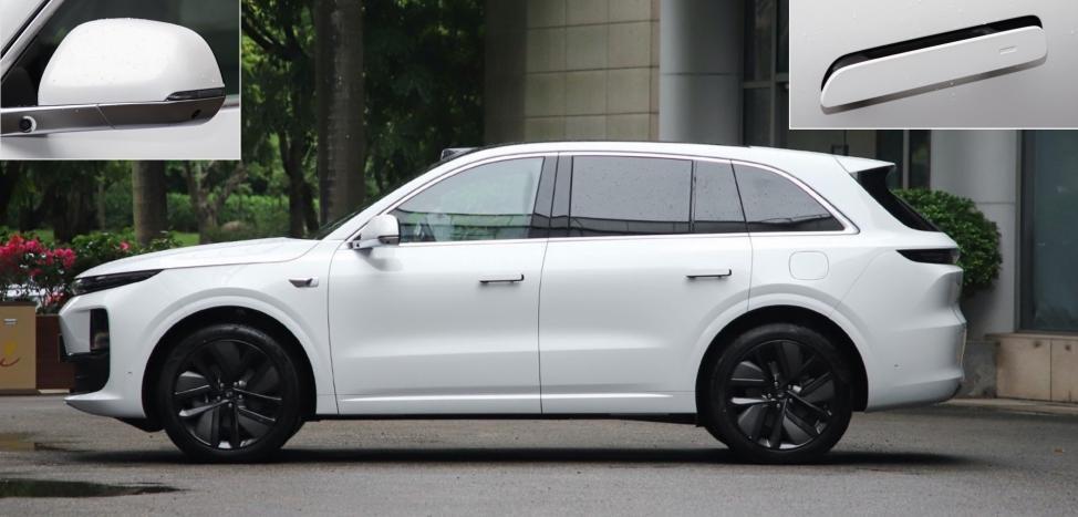 側面造型與L7相似度依然很高,由于軸距縮短,前后懸也同步縮短,比例接近。D柱的傾斜角度與L7也差不多,整體看來端莊得體。側窗造型對稱感很好,增加鍍鉻邊框提升檔次感,后門車窗依然是分段式,后方有固定窗,前方可開啟部分相比L7短了一截,不過車窗依然能開到底,很實用。細節上,集成了兩個攝像頭的后視鏡底座、前翼子板處的側后視攝像頭、整體隱藏彈出式門把手,都沒有變化。