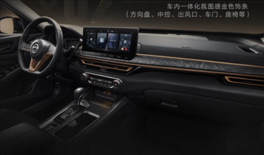 內飾部分,該車采用了一體化氛圍感的金色飾條,涵蓋方向盤、中控、出風口、車門、座椅等,并新增了前排通風加熱真皮座椅(含遠程和語音控制)。